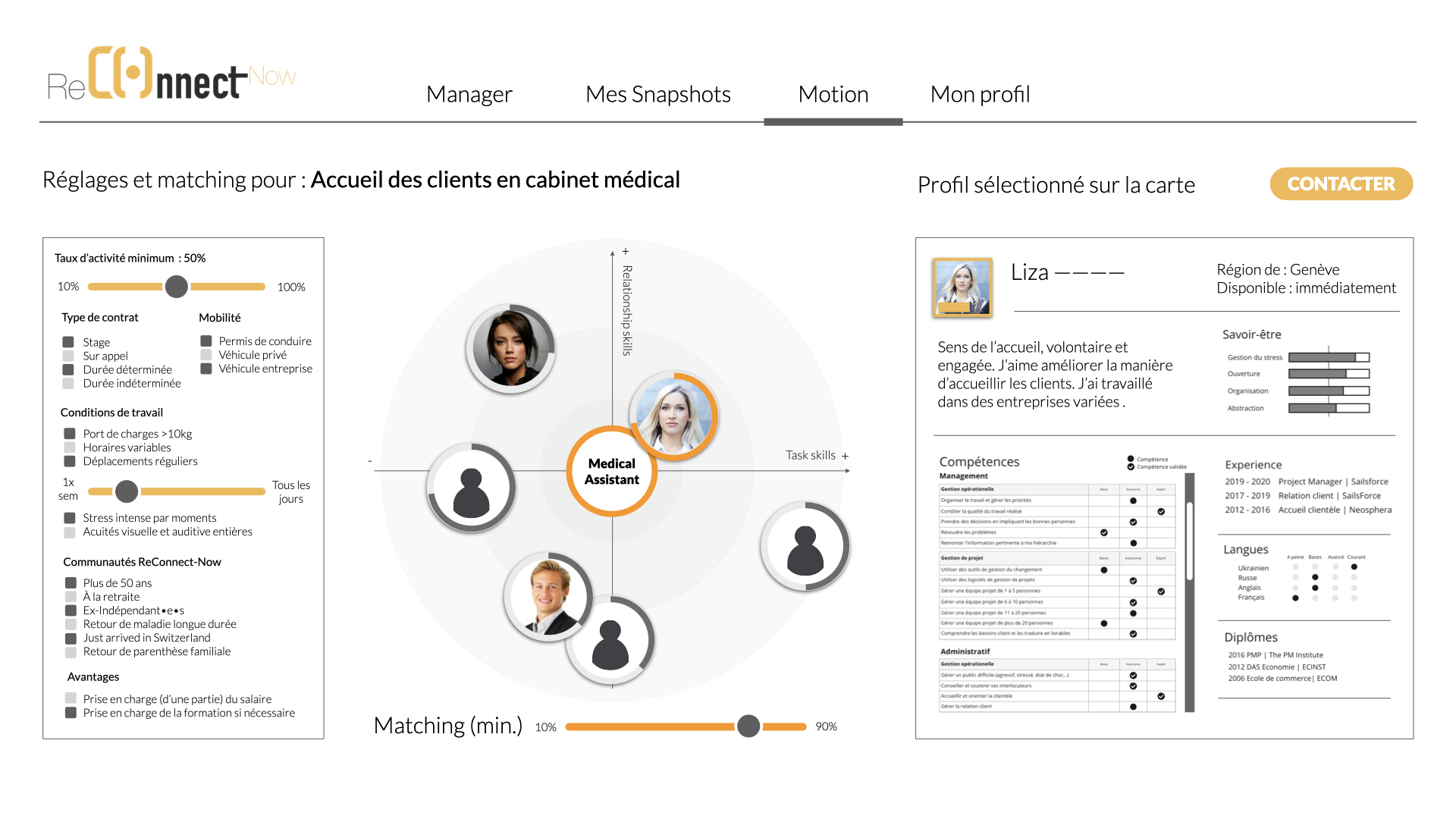 De plus en plus de personnes se voient écartées du marché de l'emploi pour diverses raisons (longue maladie, parenthèse familiale, …). ReConnect-now est une association qui crée et enrichit les liens entre ces personnes en manque de visibilité et les employeurs qui recherchent leurs compétences.